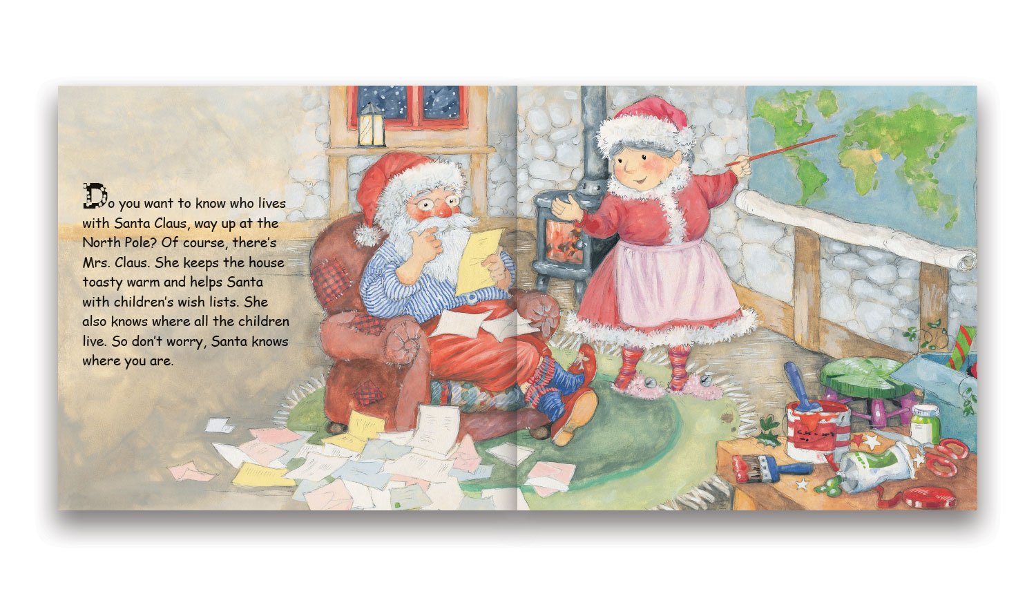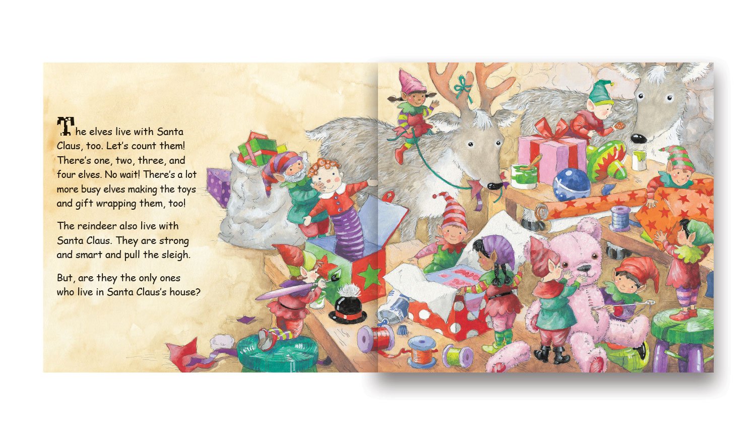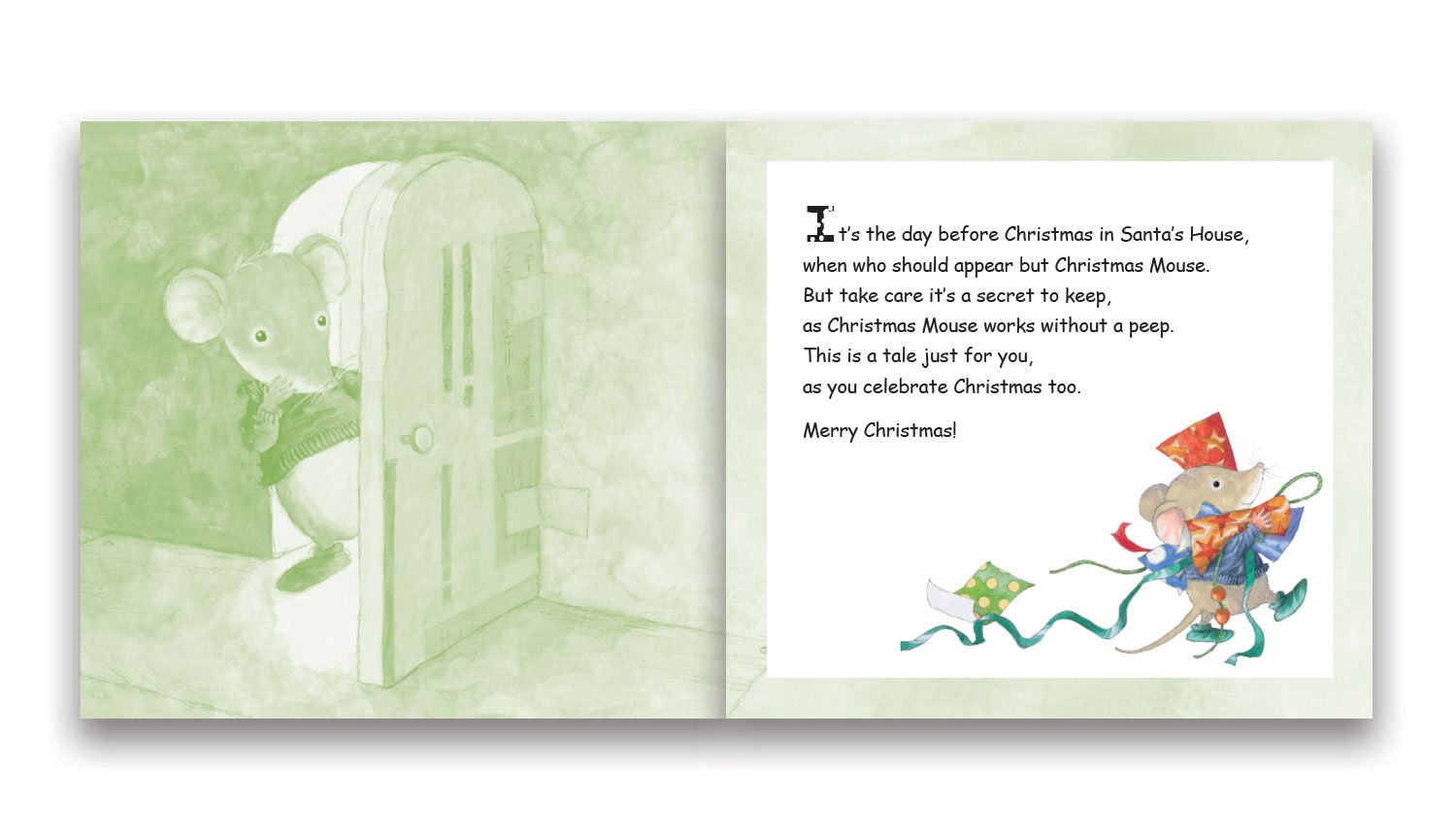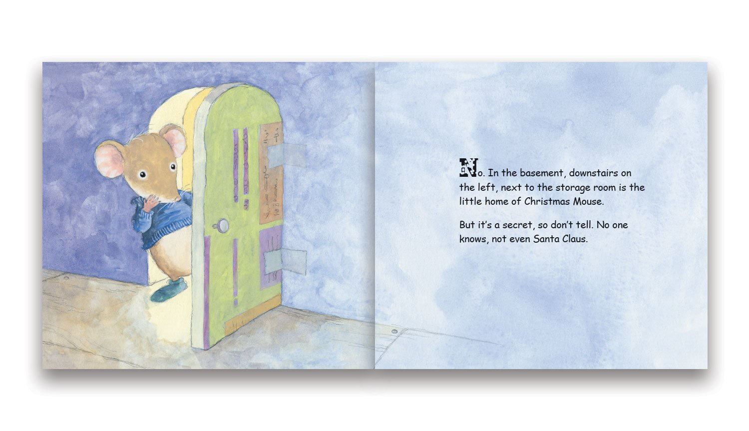 Somebody very little is hiding in Santa’s house. Downstairs to the left next to the storage room is the home of Christmas Mouse. But it is a secret. No one knows, not even Santa Claus. Christmas Mouse hides under the table and secretly helps as the gifts are made. Will all be ready by Christmas Eve?